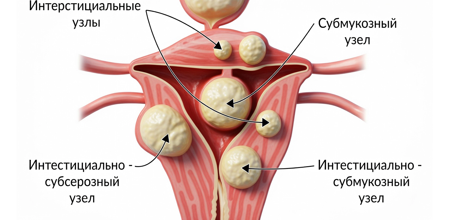 Миоматозный узел, растущий к полости матки, получил название миомы с центрипетальным ростом, при появлении деформации речь идет об интерстициально-субмукозной форме. Опухоль, растущая из маточной стенки по направлению к брюшной полости, если она выступает за границы матки, называется интерстициально-субсерозной. Разновидность миомы важно учитывать при планировании тактики лечения.